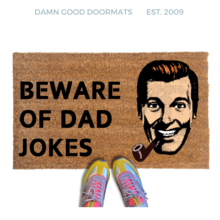 This door mat is the perfect Father's Day gift for Gen X Dads. Our "Beware of Dad Jokes" welcome mat proudly displays the smiling face of satire, "Bobb" Dobbs.