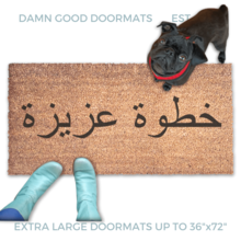 Transform your doorstep with an authentic Arabic script Welcome mat, Ahlan Wa Sahlan to create a warm and inviting atmosphere.