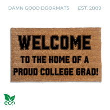 Surprise your alumni with a CUSTOM COLLEGE GRAD Welcome Mat at your doorway.