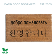 Korean English bilingual Welcome doormat. Do you have a different mix in your house? French, Spanish Arabic- we can make you a custom combination welcome doormat!